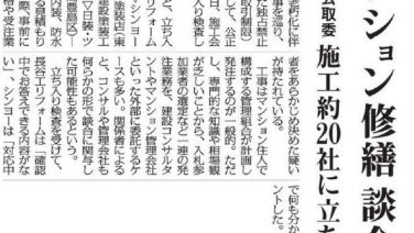 マンション修繕で談合か 長谷工リフォームなど立ち入り マンションの大規模修繕工事で談合をしていた疑いがあるとして、公正取引委員会は4日、独禁法違反(不当な取引制限)の疑いで、東証プライム上場「長谷工コーポレーション」(東京都港区)のグループ会社「長谷工リフォーム」(同)など約20社を立ち長谷工リフォーム,長谷工コミュニティー,不祥事,修繕,立ち入り,マンション,手抜き工事,大規模修繕,大規模修繕工事,談合,公正取引委員会,独禁法違反,不当な取引制限,長谷工コーポレーション,長谷工リフォーム,中村塗装店,建設塗装工業,シンヨー,大和,